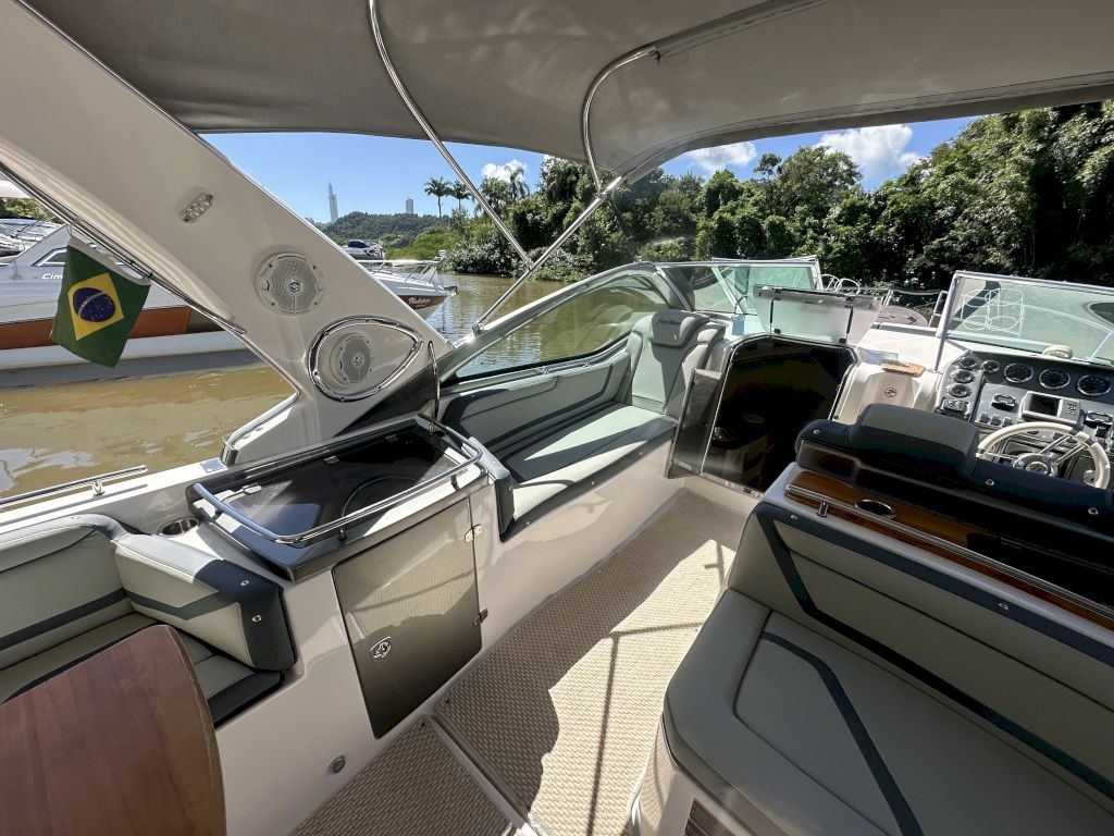 Itens opcionais já instalados: Bússola, Buzina, Colchão de Proa,Ducha na Plataforma de Popa, Escada 4 Degraus na Plataforma,- Radio VHF com antena e suporte, Guincho elétrico de ancora, Direção Hidráulica, Isolamento acústico da casa de máquinas, Flaps Hidráulico, Luzes de Cabine, Luzes de Navegação , Tomada 12V, Som , Fechamento , Marcador de combustível, Mesa de centro escamoteável, WC Elétrico, Churrasqueira,GPS Garmin 521S, Farol de Proa, Alarme de Inundação, Sistema de Extinção de Incêndio, Rabeta Bravo, T omada de Cais, Ar condicionado , Plataforma de popa estendida,- Suporte para jet ski,Jet Ski sea doo spark 60Hp ano 2013 com escada e bagageiro, Porta defensas, Proteção de ancora, Carreta de encalhe, TV 32, Ventilador 12V, Tapete, 2 Camas de casal , Painel Elétrico , Pára-brisa, Pia , Targa, Toalete Fechado, Kit salvatagem completo, Defensas, Ducha Interna, Bomba de água doce, Bomba de Porão, 2 Motores Mercruizer 220HPGasolina .