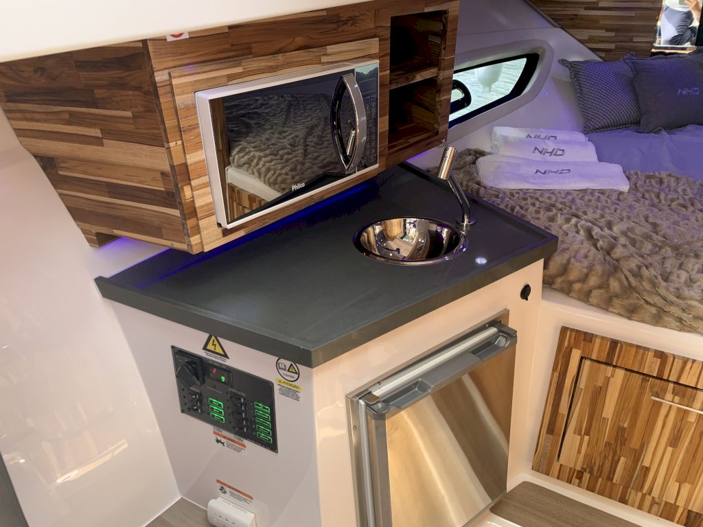 A embarcação também possui um teto rígido e um conceito novo para a categoria de iluminação diurna, o daylight. São leds que compõe o design da embarcação sendo agora possivel identificar uma NHD tanto de dia quanto te noite. O design é esportivo e a proa é larga aumentando ainda mais a capacidade de passageiros a bordo.