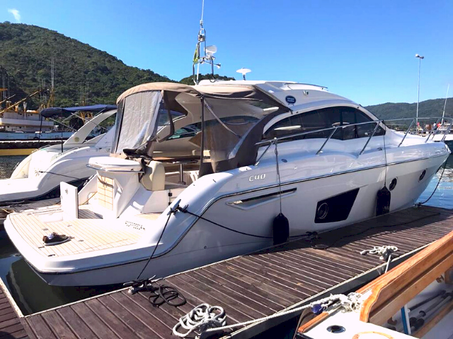 Ítens opcionais já instalados: Rádio VHF,GPS,Guincho Elétrico,Eco Sonda,Bússula,CD Play,TV,DVD , Ventiladores,Flap hidráulico,WC , Ar condicionado, Boiler,Microondas, Fogão, Geladeira , Frigobar, Luz Sub aquática,Capota retrátil , Fechamento total,carreta de encalhe ,Carreta de encalhe,Capota retrátil,Carregador de bateria,Strobo Light,Teka , Farol de controle ,Tomada de Cais,Gerador, Inversor e Churrasqueira.